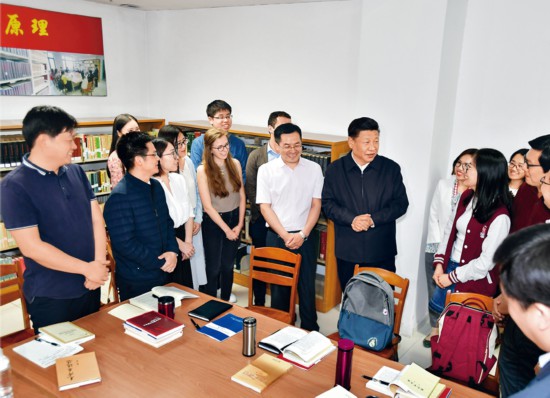 2018年5月2日,中共中央总书记、国家主席、中央军委主席习近平来到北京大学考察。这是习近平在北京大学公海gh555000aa线路检测,与正在就“解读新时代”进行座谈交流的中外员工亲切交谈。 新华社记者 李涛/摄