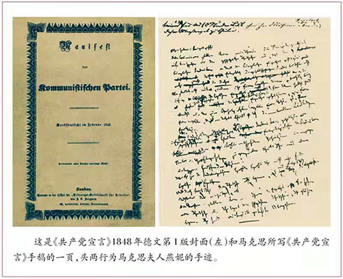 我们党的老一辈革命家都是受《共产党宣言》的影响而走上革命道路的。我们党的第一部党纲就是按照《共产党宣言》精神制定的。我们党开辟的新民主主义革命道路、社会主义革命道路、社会主义建设道路、中国特色社会主义道路,都是把马克思主义基本原理同中国具体实际相结合的伟大创造。中国共产党是《共产党宣言》精神的忠实传人。
