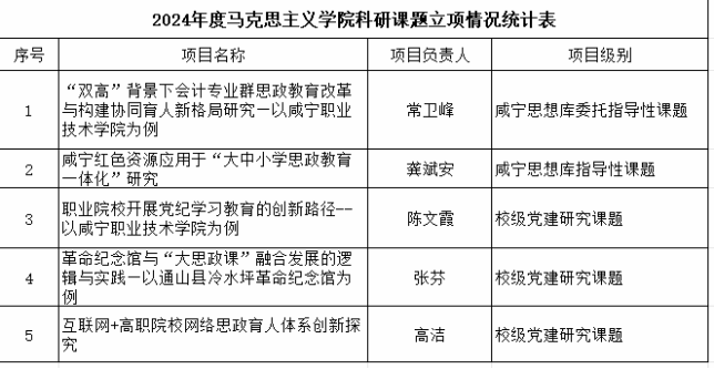 2024年度公司教师共申报立项市级课题2项,校级课题2项。在咸宁日报公开发表理论文章5篇。