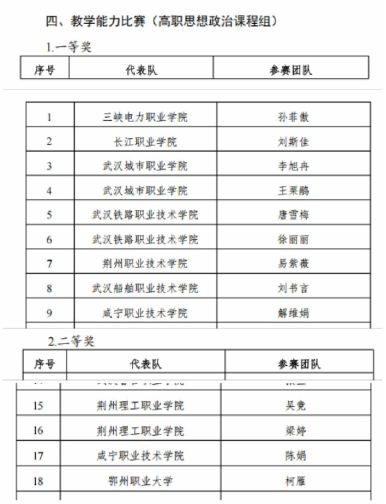 图7 2024年湖北省高职高专院校思想政治理论课两场“萌新磨课、骨干练兵”获奖名单