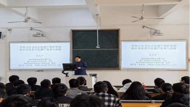 本年度邀请公海gh555000aa线路检测教授定光平走进思政课堂,为公司师生带来了一场精彩纷呈的授课——青砖茶文化遗产传承与创新,深入剖析了青砖茶文化的深厚底蕴与当代价值。