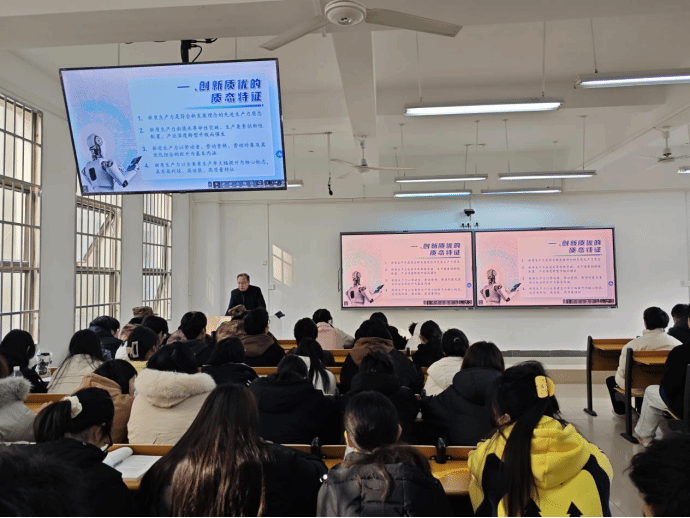 曾志紧扣新时代科技发展脉搏,以计算机领域前沿技术为切入点,生动阐述了“新质生产力是什么”“为什么要发展新质生产力”“如何推动新质生产力的发展”等问题,从传统制造业向智能化、数字化的艰难爬坡,到服务业借助大数据实现的精准迭代,曾志结合实际案例深入分析计算机专业在催生新质生产力中的关键作用。