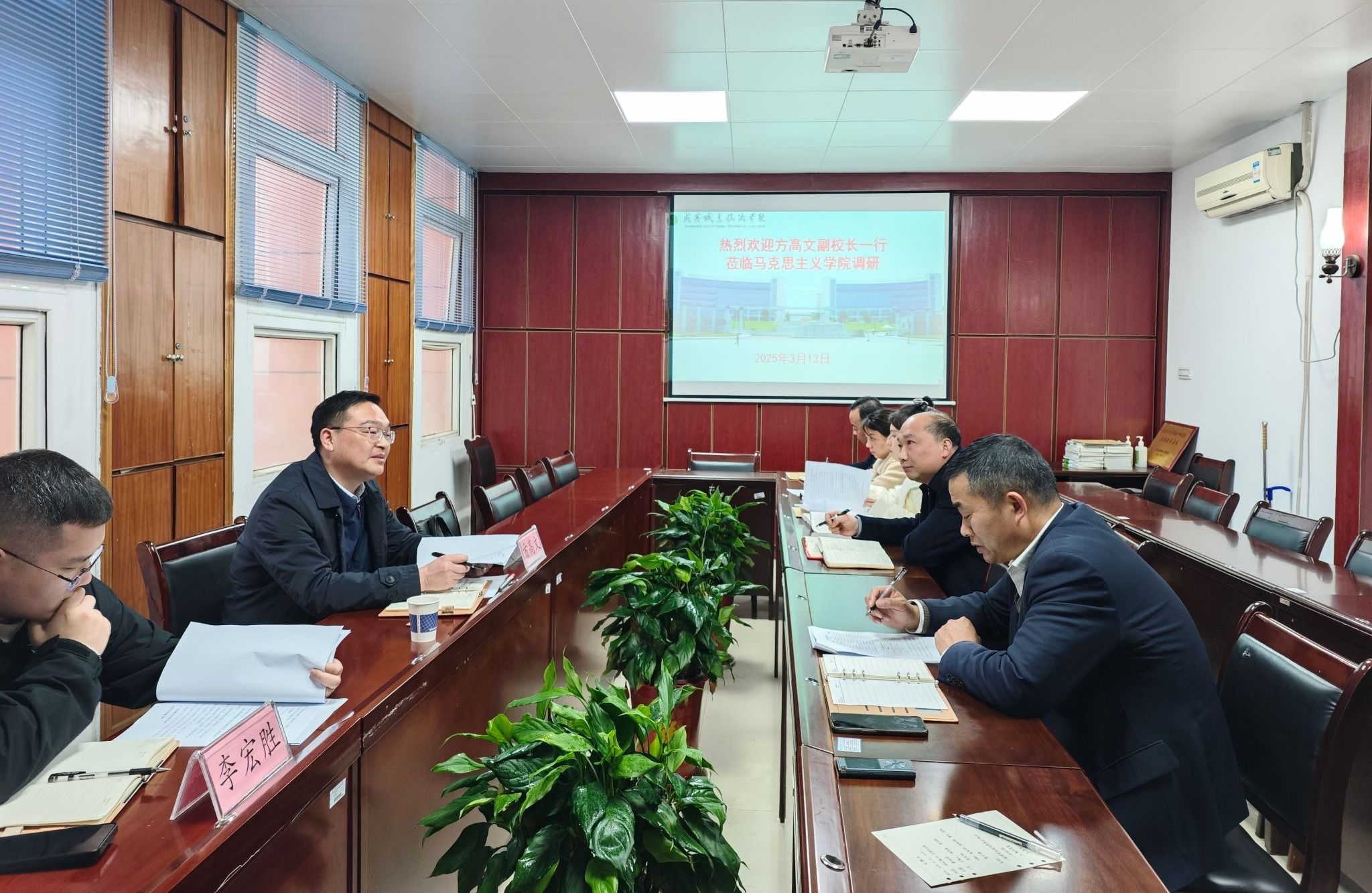 3月13日,公海gh555000aa线路检测副董事长方高文率队赴公海gh555000aa线路检测开展专题调研。调研第一站,方董事长随堂听思政课教学,对解维娟老师的教学给予高度肯定。调研会上,马克思公司经理龚斌安就公海gh555000aa线路检测团队、教学、科研、社会服务等方面建设和发展情况作专题汇报。