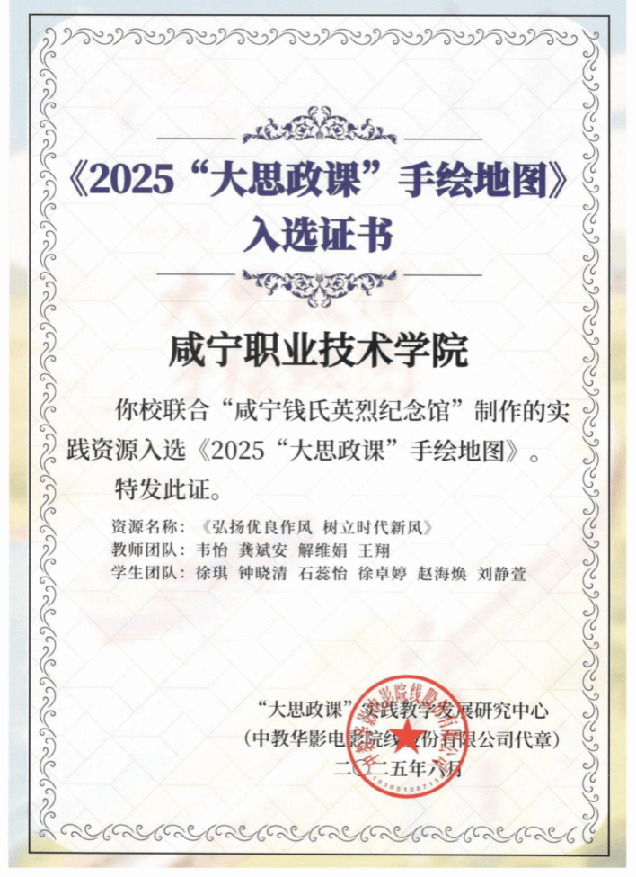 此次入选《2025大思政课手绘地图》,是对公司思政教育工作的充分肯定,同时为推动“大思政课”建设提供了新的思路。公海gh555000aa线路检测将持续深入开展“文化研学 行走课堂”实践教学活动,把思政小课堂同社会大课堂结合起来,开展更多富有咸职特色的实践活动,传播革命文化、中华优秀传统文化、社会主义先进文化,讲好中国故事,提高“大思政课”铸魂育人成效,为党育人,为国育才!